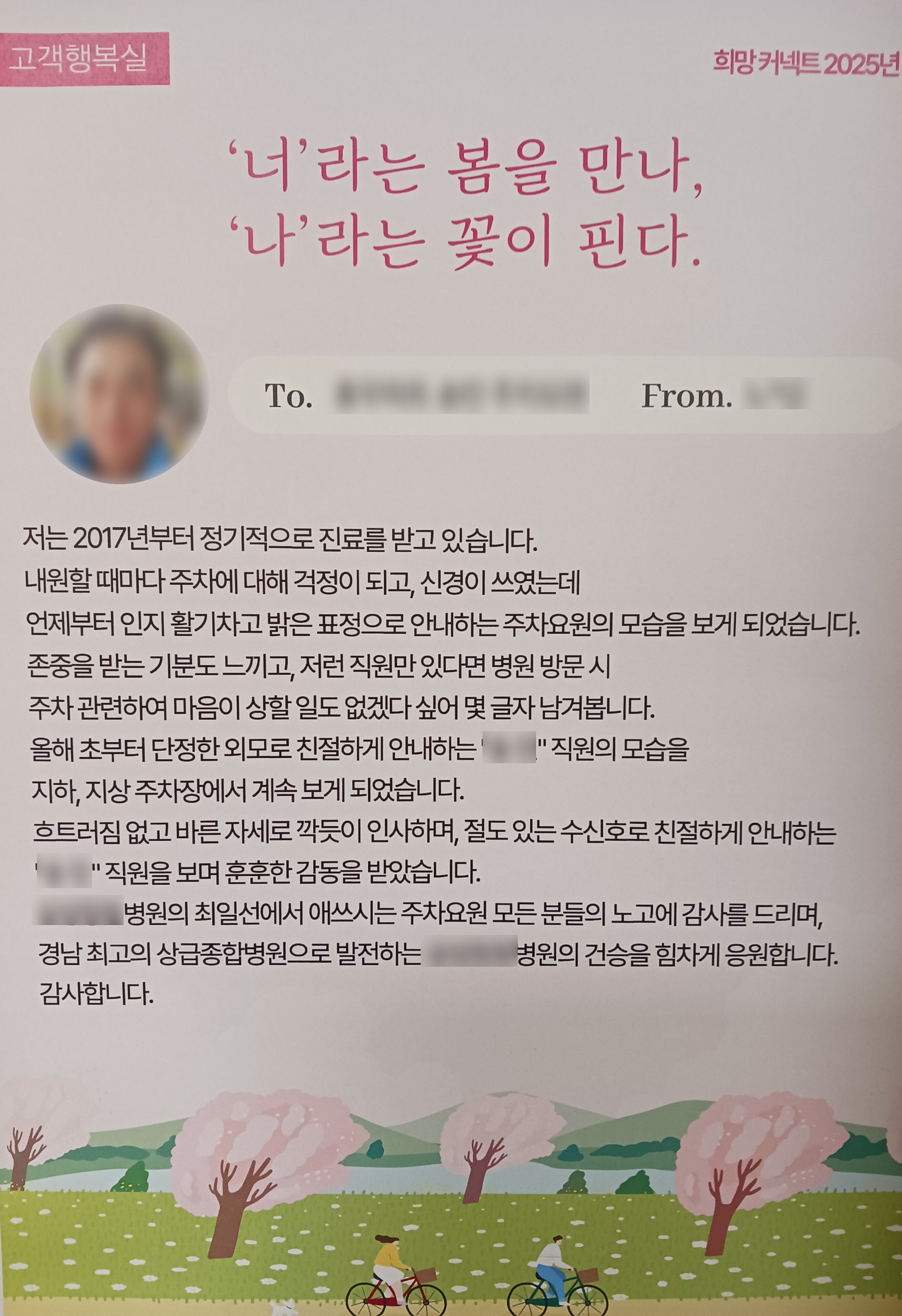 특히 주차팀 전체에게 “우리의 작은 친절이 누군가에게는 큰 감동이 된다”는