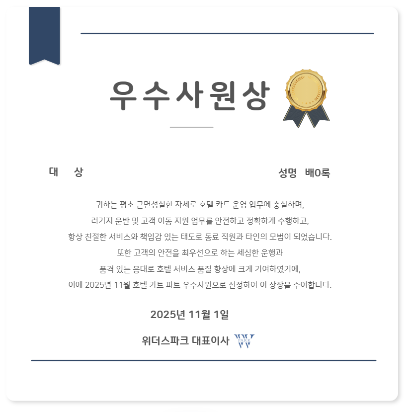 이번 11월 위더스파크 우수사원으로 선정된 분은